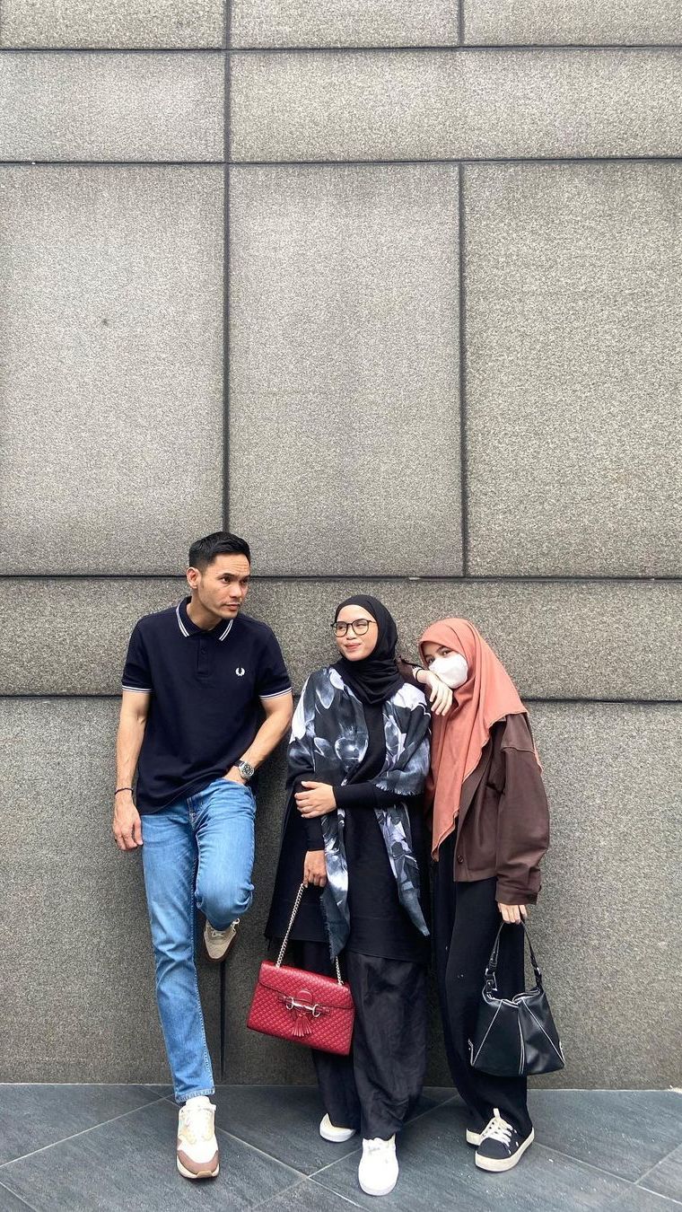 Saat hangout bersama ayah serta ibu sambungya, Sienna tampil casual namun tetap syar'i.Â
